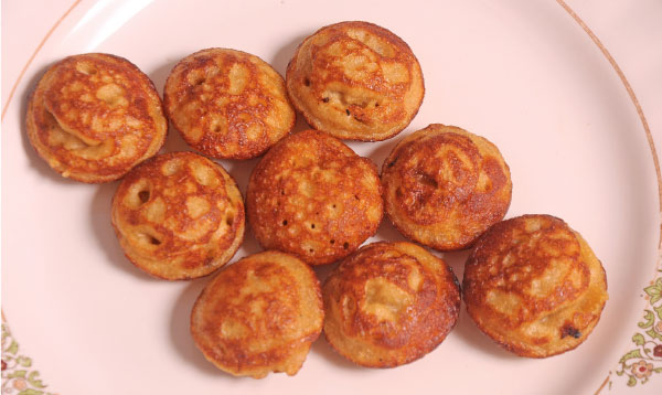 பச்சரிசி, உளுந்து, வெந்தயம் மூன்றையும் ஒன்றாகச் சேர்த்து 4 மணி நேரம் ஊறவைக்கவும். ஏலக்காயைப் பொடித்துக் கொள்ளவும். அடுப்பில் கனமான அடிப்பகுதியுள்ள பாத்திரத்தை வைத்து சிறிது தண்ணீர் ஊற்றிக் கொதிக்கவிடவும். இத்துடன் பொடித்த வெல்லம் சேர்த்துக் கொதிக்கவிட்டு கரைத்து வடிகட்டவும். ஊறிய அரிசி, உளுந்து, வெந்தயத்துடன் வெல்லம் கரைத்த தண்ணீர் ஊற்றி மையாக கிரைண்டரில் அரைக்கவும். மாவை வழித்தெடுத்து ஒரு பாத்திரத்தில் சேர்த்து 8 மணிநேரம் புளிக்கவிடவும். அடுப்பில் வாணலியை வைத்து, நெய் ஊற்றி தேங்காய்த் துருவல் சேர்த்து லேசாக வதக்கவும். இதை புளிக்க வைத்துள்ள மாவில் சேர்த்துக் கலக்கவும். இத்துடன் பொடித்த ஏலக்காய், சோடா உப்பு இரண்டையும் சேர்த்து பணியாரம் ஊற்றும் பதத்துக்குக் கரைத்து, பணியாரக் குழியில் ஊற்றி எண்ணெய் விட்டு இருபுறமும் வேகவைத்து எடுக்கவும்.